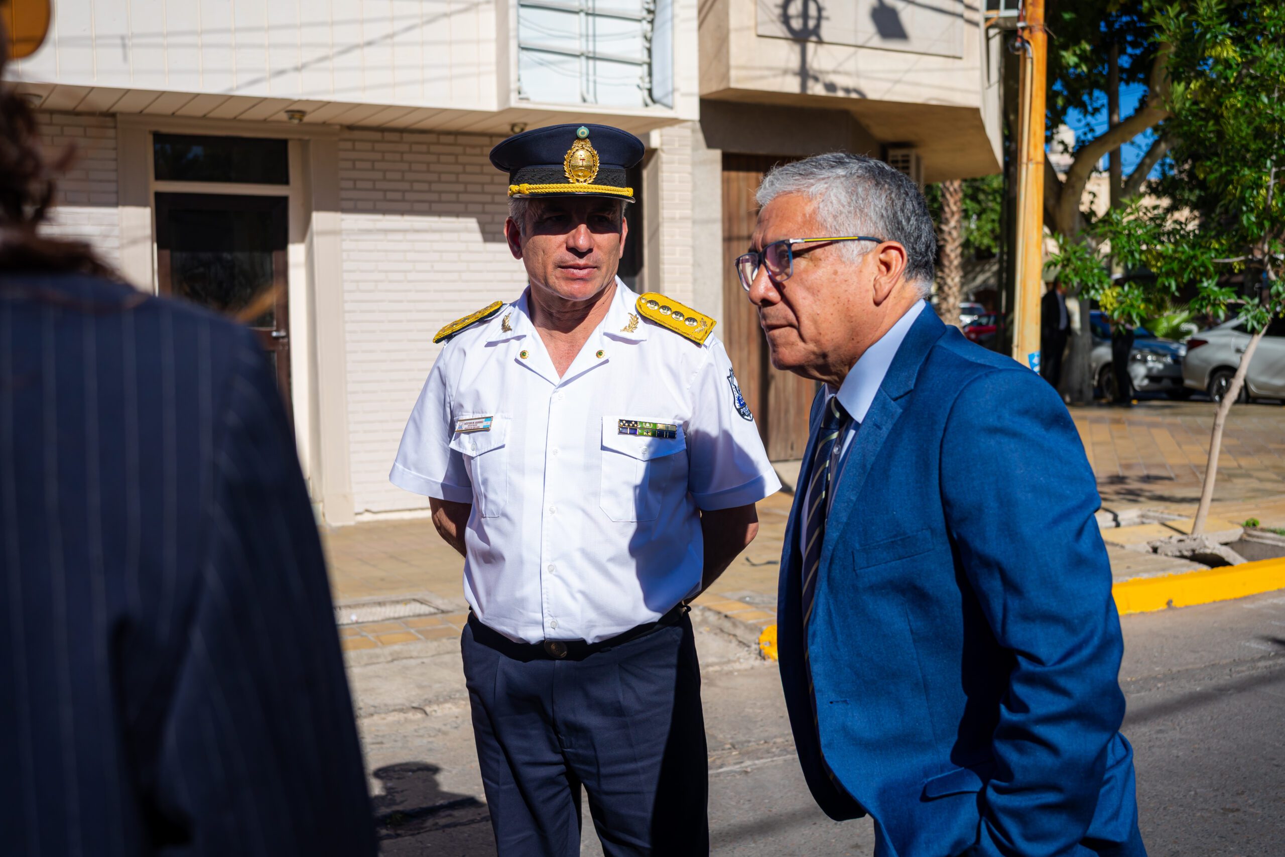 Del acto participaron la presidenta de la Corte de Justicia, Adriana García Nieto; el fiscal general Guillermo Baigorri; la subsecretaria de Seguridad, Sandra Chamorro; el subsecretario de Control y Gestión de la Seguridad Pública, Damián Villavicencio; el jefe del RIM 22, Gastón Patera; el director del Servicio Penitenciario Provincial, Carlos Suárez; la subjefa de Policía, Cintia Álamo; integrantes de la Plana Mayor policial y autoridades del área de Seguridad.