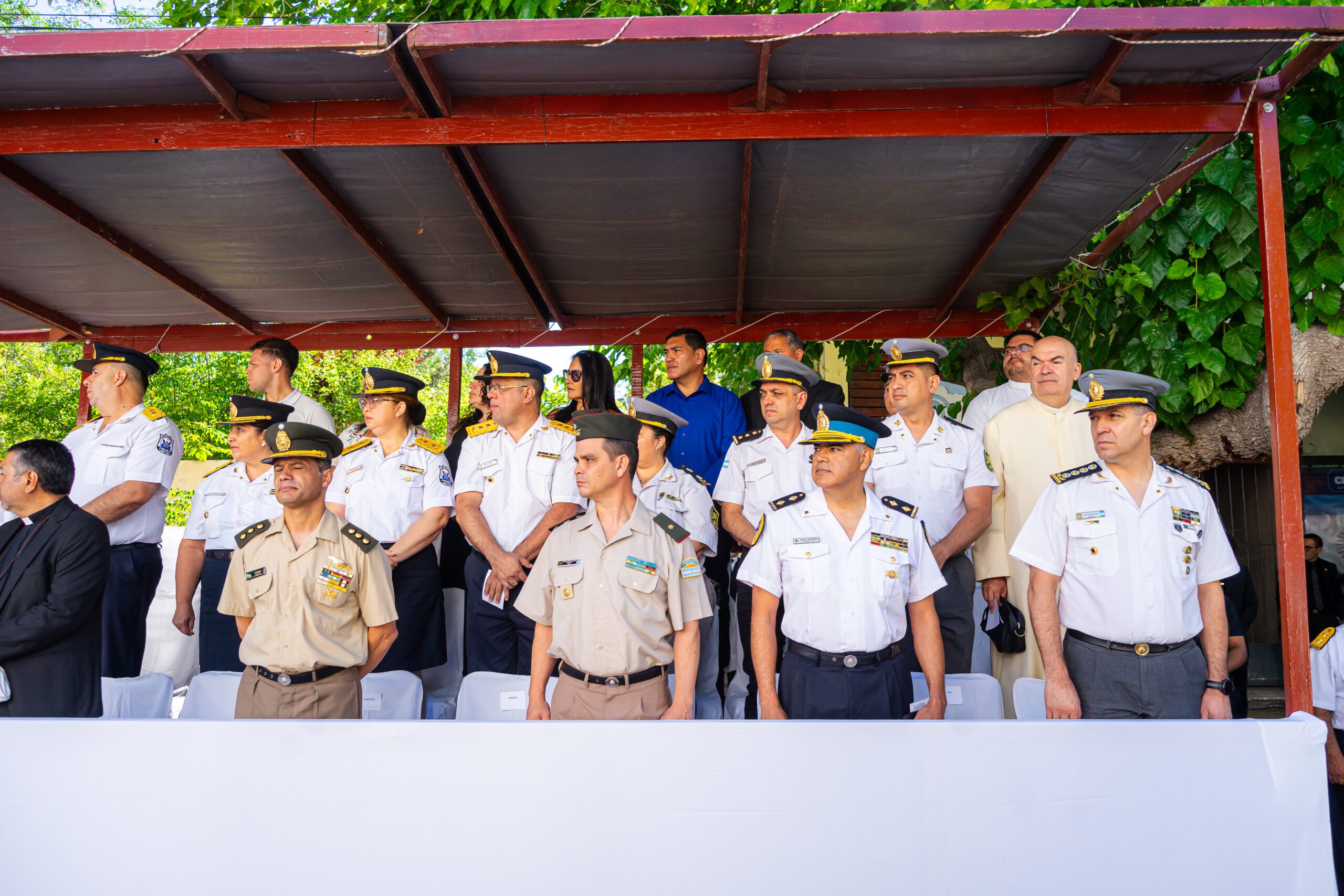 La ceremonia fue encabezada por el vicegobernador Fabián Martín, el secretario de Estado de Seguridad y Orden Público, Enrique Delgado, y el jefe de la Policía de San Juan, Néstor Álvarez, quienes pasaron revista a la formación antes del inicio del desfile.