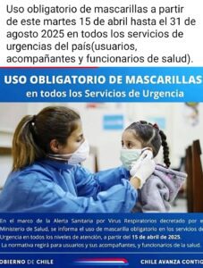 Si tenés planeado viajar a Chile en los próximos meses, es importante que tomes en cuenta una nueva medida sanitaria implementada por el gobierno chileno. Desde este martes 15 de abril y hasta el 31 de agosto de 2025, será obligatorio el uso de mascarillas en todos los servicios de urgencias del país trasandino, incluyendo hospitales y centros de atención de emergencias.