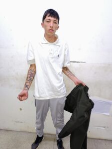 Con los datos aportados, la policía montó un operativo cerrojo que permitió localizarlos en el barrio San Martín II, Pocito. Uno de ellos, identificado como Ibáñez Nahuel (23), del barrio Conjunto 7, fue detenido junto a la moto y dos cascos negros.