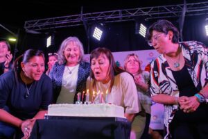 Uno de los momentos más convocantes fue el reparto de una torta gigante preparada para mil personas. En el escenario, la oferta artística incluyó shows de Leo Jorquera, Los Genios y un cierre a cargo de La Nueva Banda, que reunió a una gran cantidad de público.