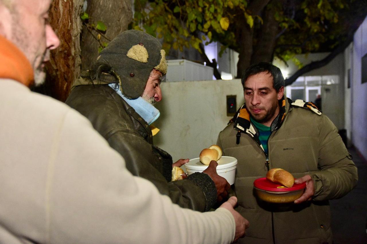 El Gobierno asistió a personas en situación de calle con frazadas, zapatillas y locro caliente