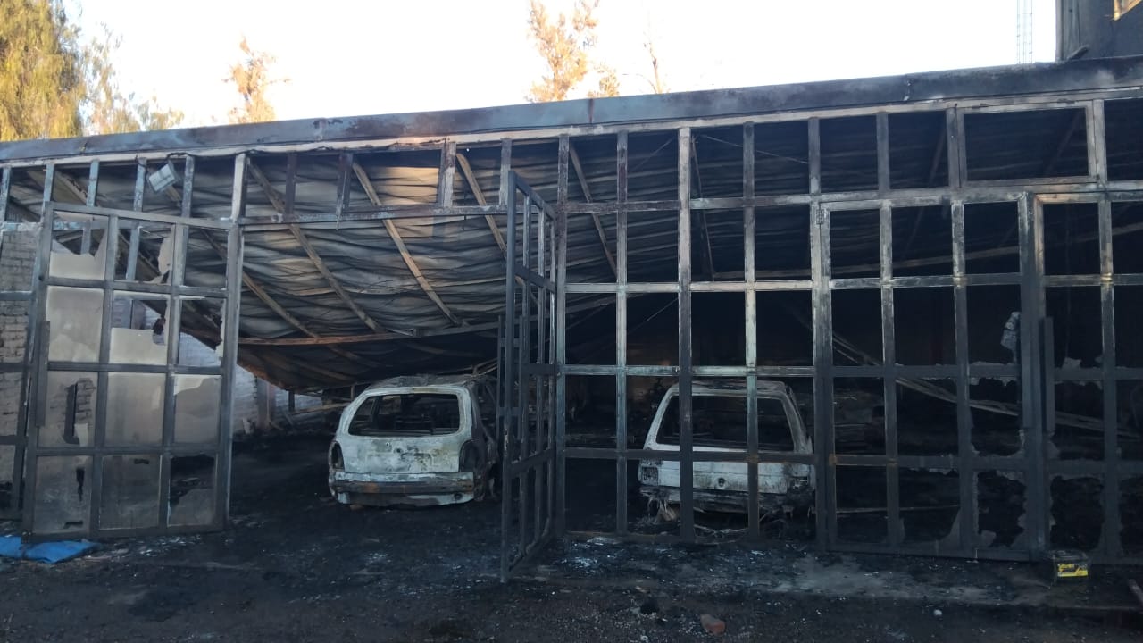 Incendio en un taller mecánico de Caucete: Seis autos destruidos