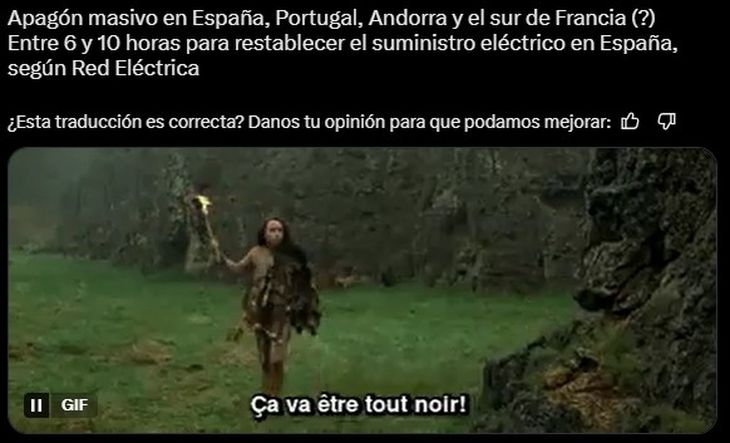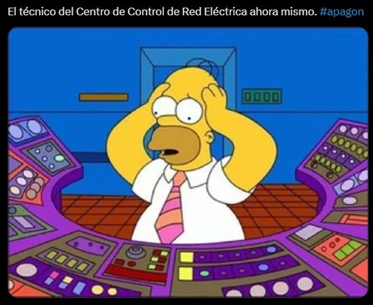 Los primeros informes especulaban incluso con un posible «ciberataque dirigido contra el sur de Europa».Los expertos estimaron que el apagón podría durar varias horas hasta que consigan levantar la luz en todos los nodos, según el sitio ok diario.Por tal motivo, los usuarios de X (ex Twitter), no perdieron la oportunidad para encontrarle el costado divertido a lo que puede significar más de un dolor de cabeza en la sociedad, y realizaron memes que reflejan el caos que está viviendo gran parte de Europa por estos momentos.