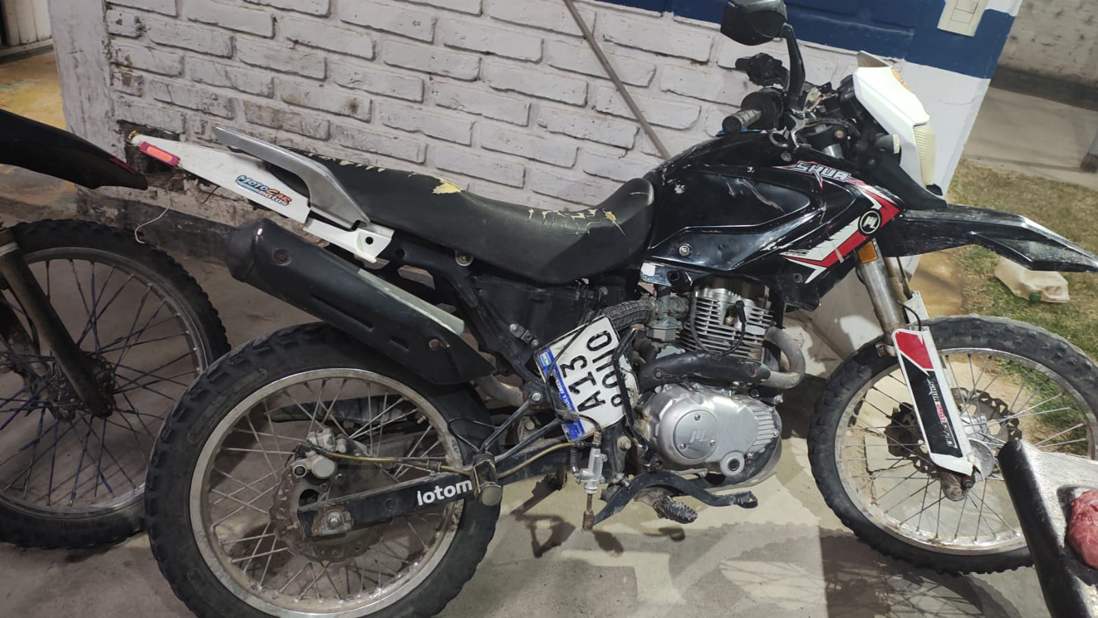 Durante la verificación de los vehículos, se constató que una de las motos era una Motomel 250cc con dominio A138OUO, mientras que la otra tenía cuadro y motor aparentemente adulterados y carecía de chapa patente. Ambas quedaron secuestradas, al igual que la camioneta y la carne faenada.