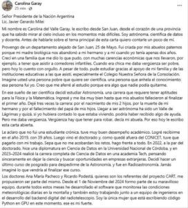“No apague la esperanza”: El pedido de una astrónoma sanjuanina a Milei