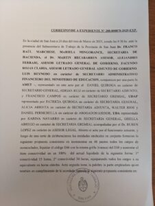 A las 9 de la mañana, el Gobierno provincial y los gremios docentes retomaron la negociación salarial en la Subsecretaría de Trabajo, en el marco de la conciliación obligatoria. La discusión giró en torno a los aumentos de febrero y marzo, que el Ejecutivo aplicó sin acuerdo previo, generando malestar en los sindicatos.