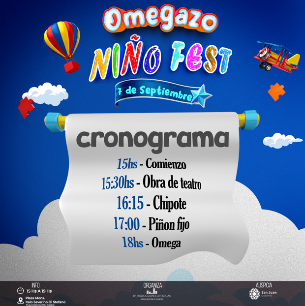 El domingo, la Plaza Monseñor Ítalo Severino Di Stefano, ubicada detrás de la terminal de ómnibus de Capital, se transformará en el escenario de esta gran celebración. El show comenzará a las 15 horas y contará con una programación pensada para todas las edades. Entre los artistas confirmados se encuentran los chicos de Magic, con una obra de teatro; Chipote, desde Córdoba, con su show; Piñón Fijo y su elenco; y Cierta Omega, con toda la banda en vivo.