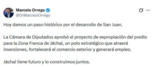 Orrego celebró la aprobación de la expropiación del predio para la Zona Franca de Jáchal