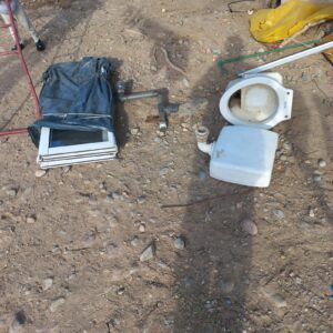 Durante el operativo, los efectivos secuestraron diversos materiales que habrían sido sustraídos de la obra, entre ellos cuatro ventanas de aluminio con vidrios, una puerta corrediza de aluminio, un inodoro con su mochila y varios caños de agua.