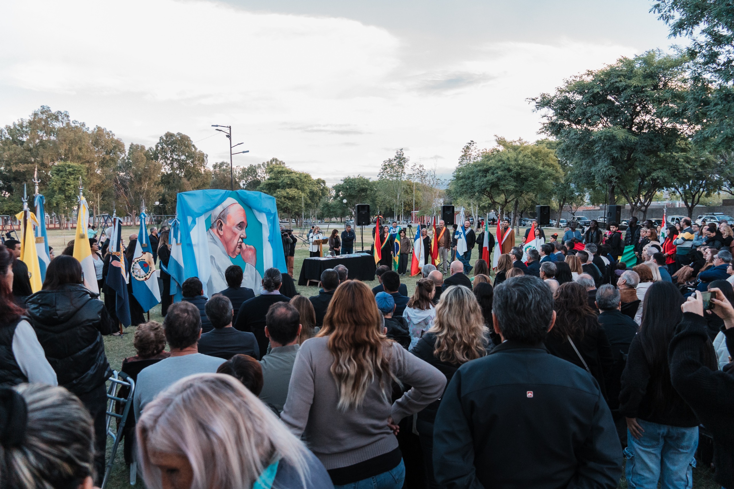 La ceremonia también incluyó la formalización de la Ordenanza N° 873-G, mediante la cual el espacio verde ubicado en Rawson pasó a denominarse “Parque Departamental Papa Francisco”, incorporando su figura al patrimonio simbólico del departamento. Además, se entregaron las distinciones “Papa Francisco” a vecinos e instituciones destacadas por su labor social, cultural y comunitaria.