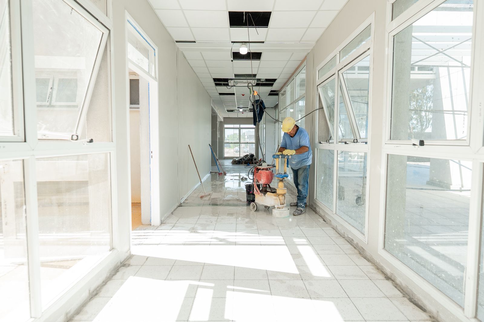 En esta instancia se desarrollan trabajos de terminación, como pintura, pulido y lustrado de pisos, colocación de equipamiento técnico, instalación de sistemas eléctricos, sanitarios y de gases médicos, además del montaje de carpinterías y divisiones internas. Estas tareas requieren una coordinación minuciosa entre equipos técnicos y operativos.
