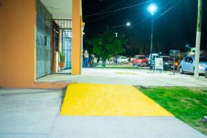 El proyecto incluyó la instalación de 58 columnas con luminarias LED que aportan mayor visibilidad y seguridad en la zona, junto con la renovación de casi mil metros cuadrados de veredas de hormigón y la reparación de 100 metros de cordón. También se sumaron rampas de accesibilidad, bancos, cestos y maceteros que embellecen el espacio y favorecen una circulación más inclusiva.