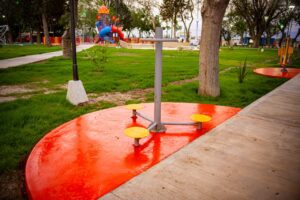 Juegos infantiles con piso antigolpe y diseño para diferentes edades.