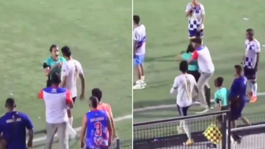 Un jugador agredió a una árbitra, ella intentó defenderse y tuvieron que frenarla